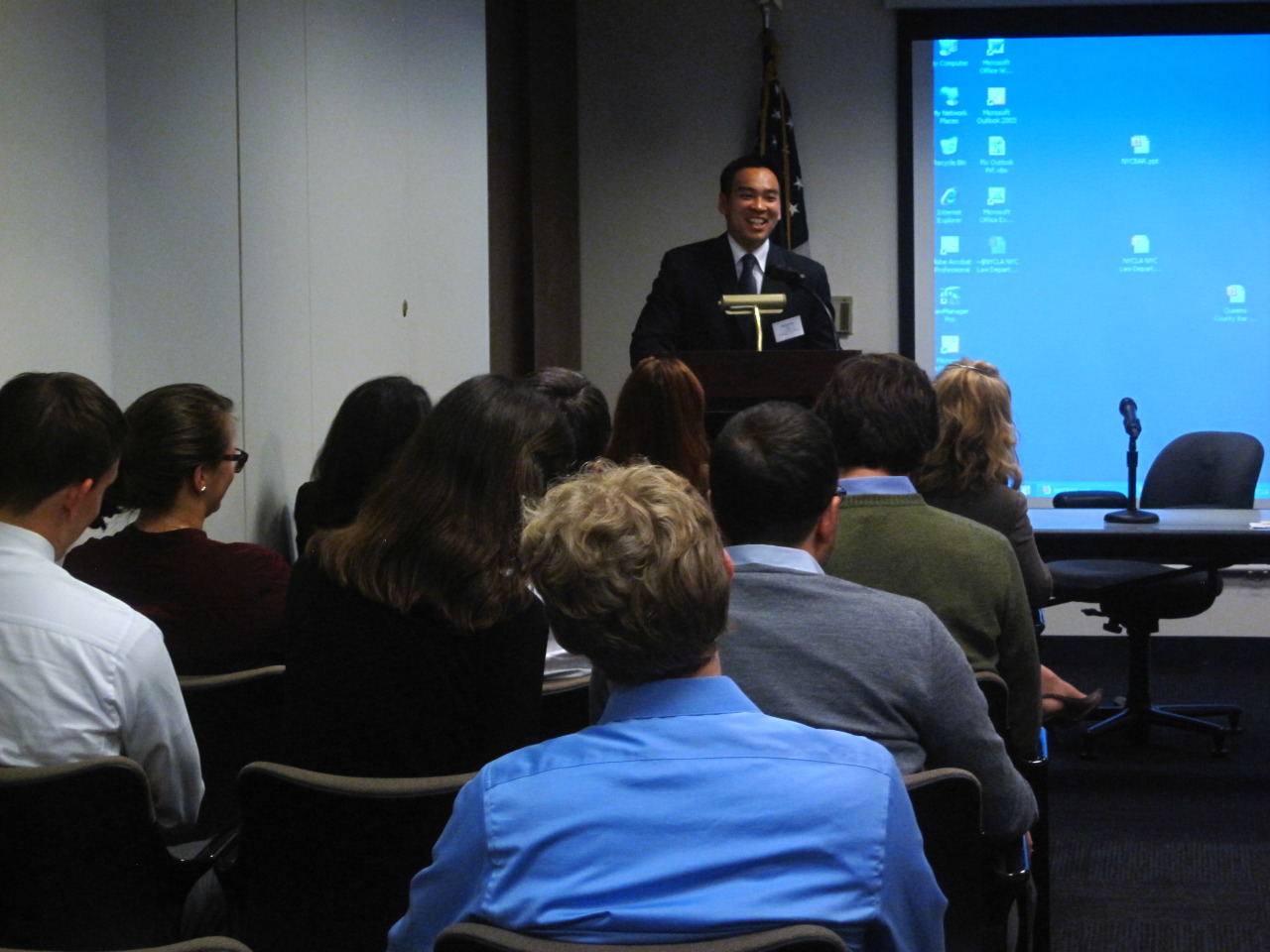 On Tuesday, September 24, AABANY took part in a bar association fair sponsored by the New York City Law Department. William Ng, Board member and former Assistant Corporation Counsel at the Law Department, represented AABANY at the event. Also taking part were the Brooklyn Bar Association, the New York City Bar, the New York County Lawyers Association, New York Women’s Bar Association, the Metropolitan Black Bar Association and the Queens County Bar Association. After each bar association gave a short presentation about what they do and why attorneys should join, the attendees got to meet with the bar association representatives to learn more about each bar association and take handouts and membership forms.
