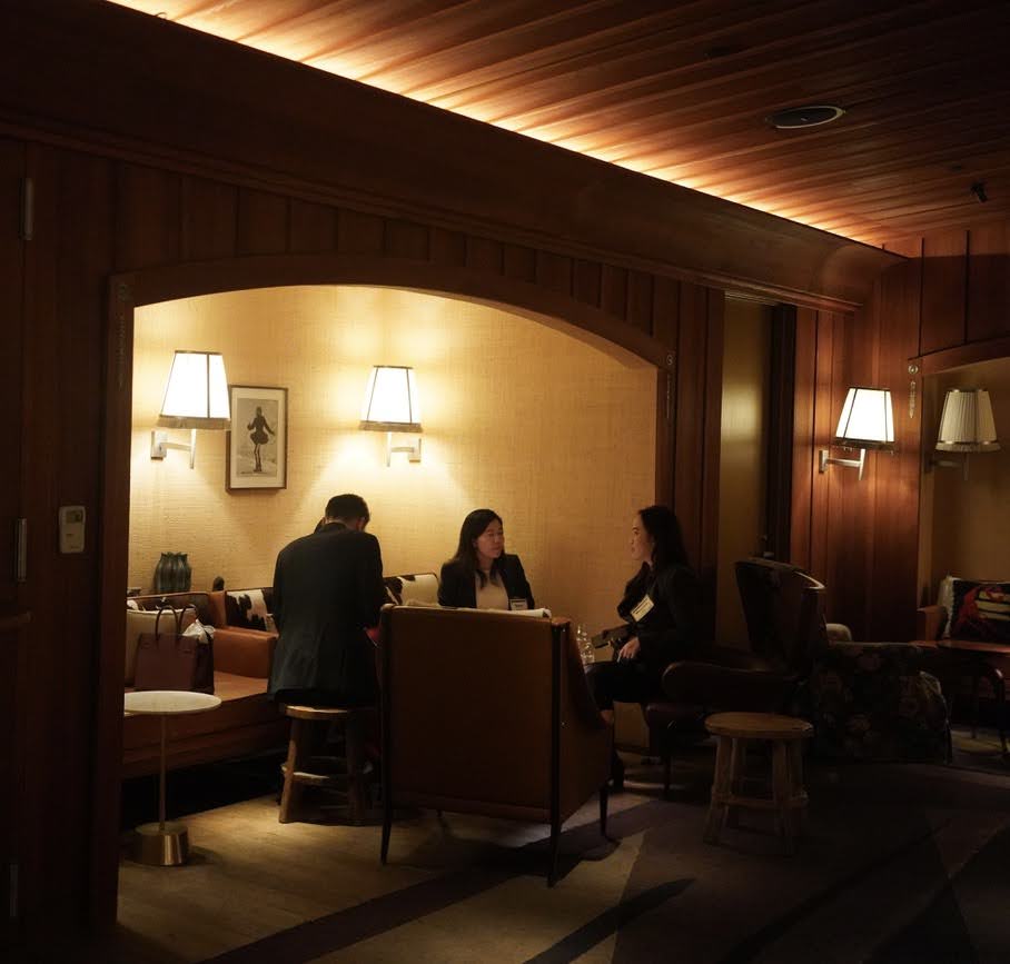 Guests started to arrive around 6:00 p.m. and were embraced by Le Chalet’s warm interior and balcony view of the city skyline. The intimate and collegial setting provided an ideal backdrop for meaningful dialogue among distinguished senior attorneys, partners, and the senior in-house counsel that represented a wide variety of sectors including financial services, technology and software development, healthcare, investment banking, insurance, real estate, media and entertainment, sports and licensing, consumer electronics, retail luxury goods, food and beverage, aviation, oil and gas, utilities, and environmental services. The companies represented included Mastercard, Pfizer, Con Edison, Wells Fargo, Morgan Stanley, Meta, Tiffany & Co., JP Morgan Chase, American Express and Johnson & Johnson.