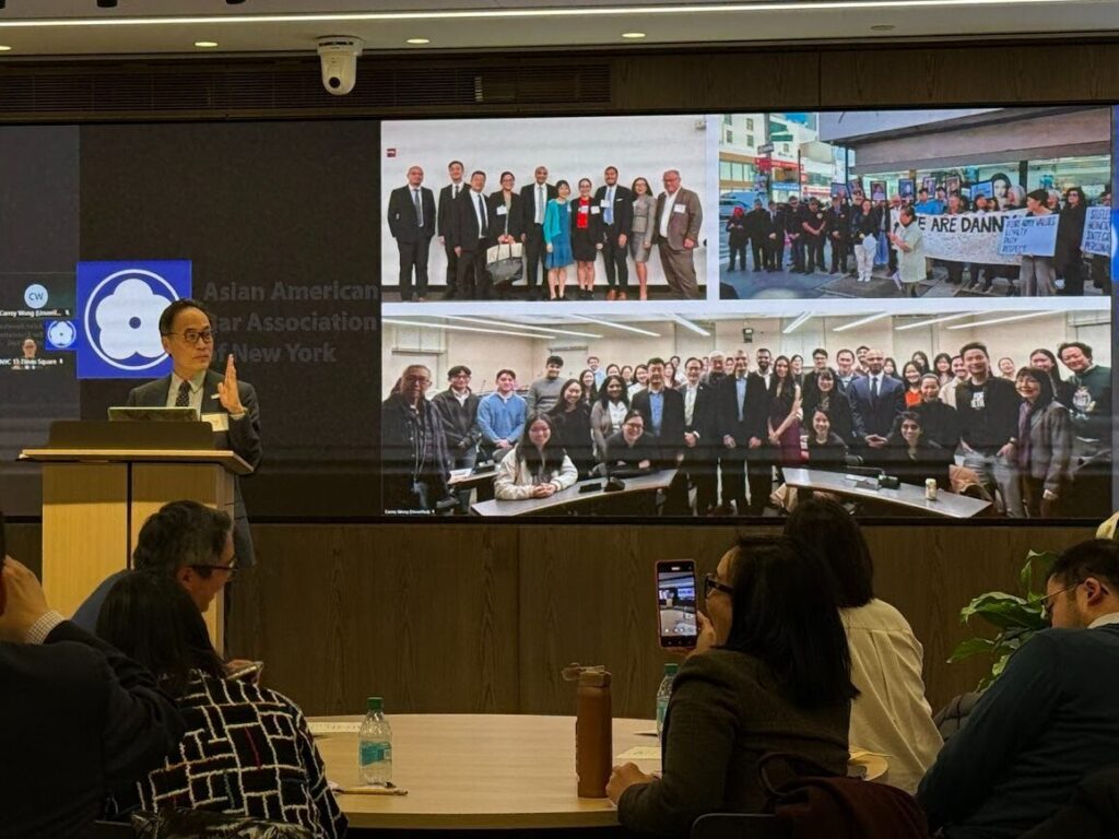 Next, during the Annual Report of the Board, Ben presented a look back at major events in 2025, reflecting on AABANY’s remarkable year, guided by the theme “Together We Thrive: The Power of Us.” He highlighted the year’s signature events, including the Winter Soiree, AAPI Heritage Month celebrations, and the Annual Dinner at Cipriani Wall Street, which drew over 750 attendees. He also noted the 16th Annual Fall Conference, which featured CLE programming, a Career Fair, a Trial Advocacy Program, and the presentation of the Norman Lau Kee Trailblazer Award to Hon. Judy Kim, the first Korean-American judge elected to the New York State Supreme Court. He celebrated AABANY’s first-ever Diwali Dinner as a milestone that reflected the community’s diversity.