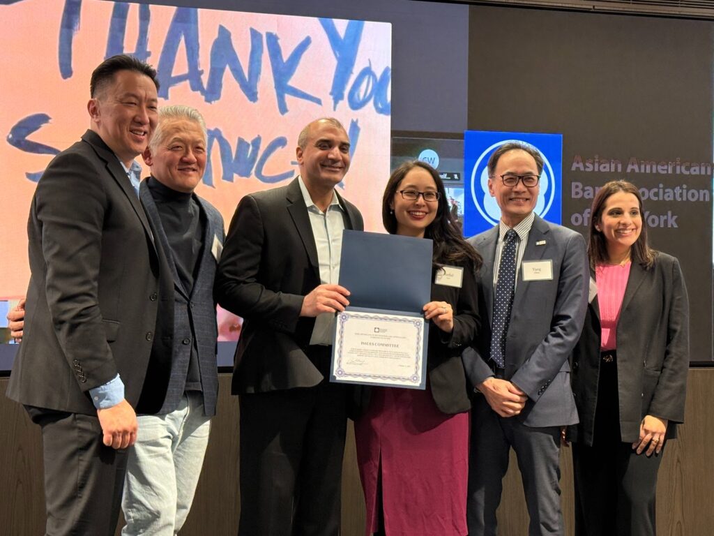 The Program of the Year Award was presented to the Dumplings and Discussion Series hosted by Jeffrey Mok. The Dumplings & Discussion series has been a welcoming forum for prominent, industry-leading attorneys to share their stories and have a candid dialogue over delicious dumplings. Speakers in 2025 included Alan Chang of the New York Yankees, Michelle Lee of MediaCo, Christopher Chan of JLL Technologies, Sonia Low of the Javits Center, Liz Nie of Acorns, Stephen Mar of Odeko, and Osamu Watanabe of Moelis.