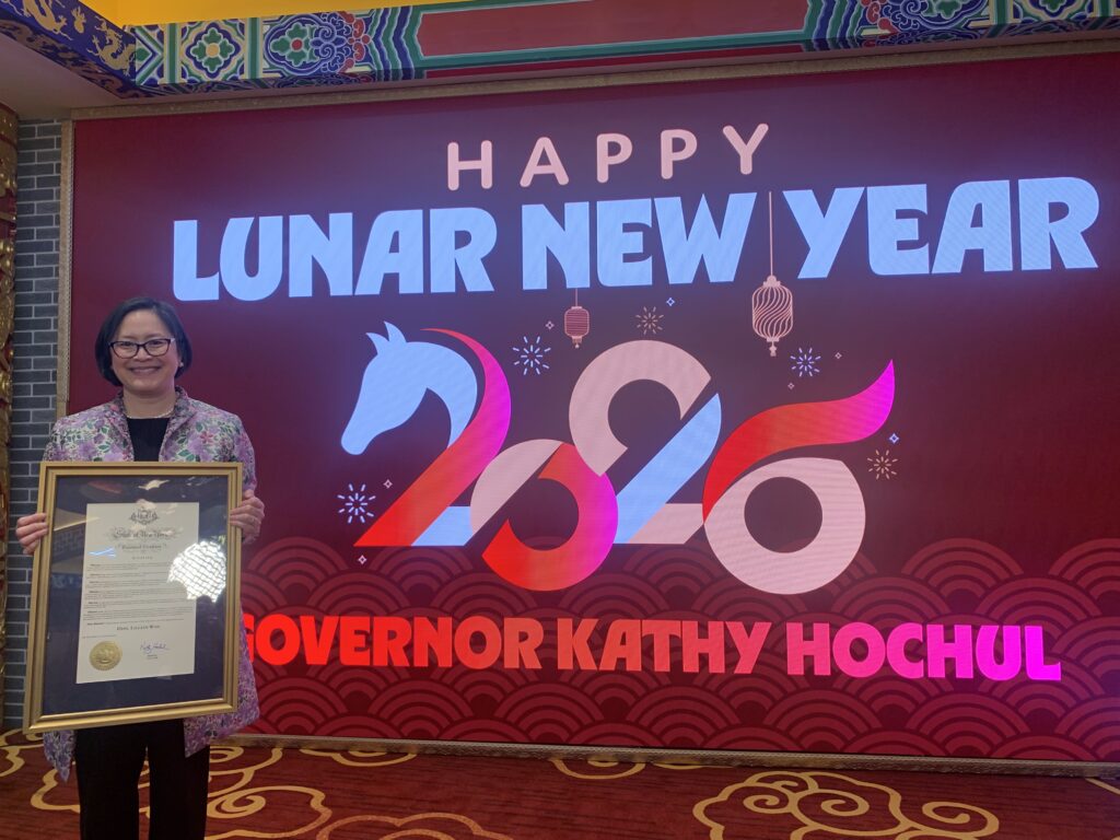 On February 18, 2026, at the Governor’s Lunar New Year celebration in Manhattan Chinatown, Justice Lillian Wan received a Special Citation from Governor Kathy Hochul. This recognition commemorates Justice Wan’s work in serving fellow New Yorkers with distinction and upholding the highest standards of excellence in public service. Justice Wan expressed deep gratitude for receiving the Special Citation from Governor Hochul, made all the more meaningful by being honored alongside Asian American Federation (AAF) CEO Catherine Chen and Coalition for Asian American Children and Families (CACF) Co-Executive Director Vanessa Leung, two leaders whose contributions to the Asian-American community have been noteworthy and impactful.