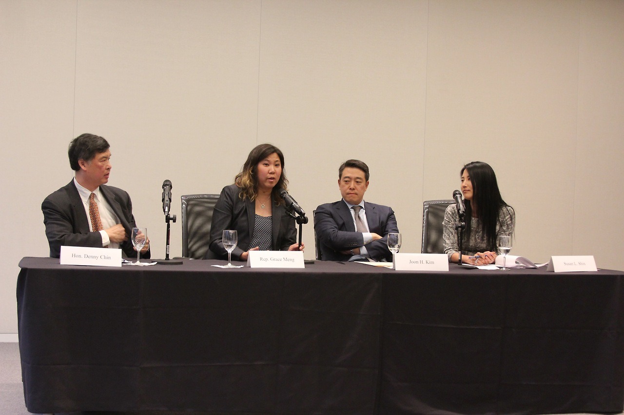 Joon Kim, former Acting United States Attorney of the Southern District of New York (SDNY) (and longtime AABANY member) gave opening remarks to welcome the standing room only crowd of more than 100 attendees. He reflected on his years serving with Preet Bharara and then succeeding him after his much-publicized termination during the prior Presidential administration. To this day, Joon remembers the gravity and weight of the words, “My name is Joon Kim, and I represent the United States” whenever he appeared before a judge or jury. The seriousness of representing the United States in numerous cases of public importance has never been lost on Joon. Now a Partner at Cleary, Joon was the first Asian American Acting United States Attorney in the Southern District, following Preet Bharara, who was the first Asian American United States Attorney in the Southern District.